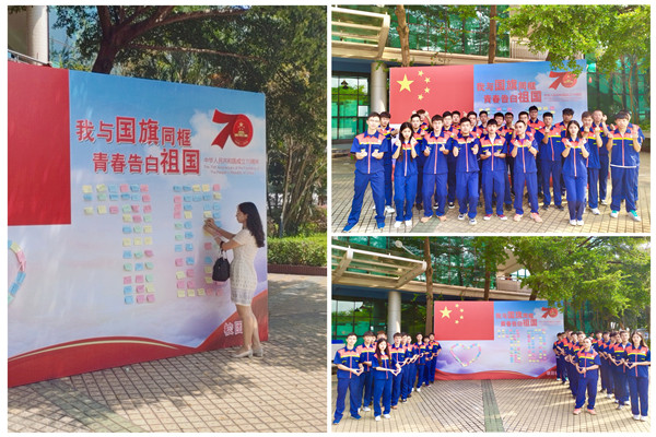 在中华人民共和国成立70周年到来之际,为让更多师生表达自己的爱国之心,进一步激发师生爱国之情。9月25日下午,由校团委主办的“我与国旗同框 青春告白祖国”活动在三个校区同步开展。活动以“青春告白祖国”,“我与国旗合影”等形式表达对祖国的热爱。