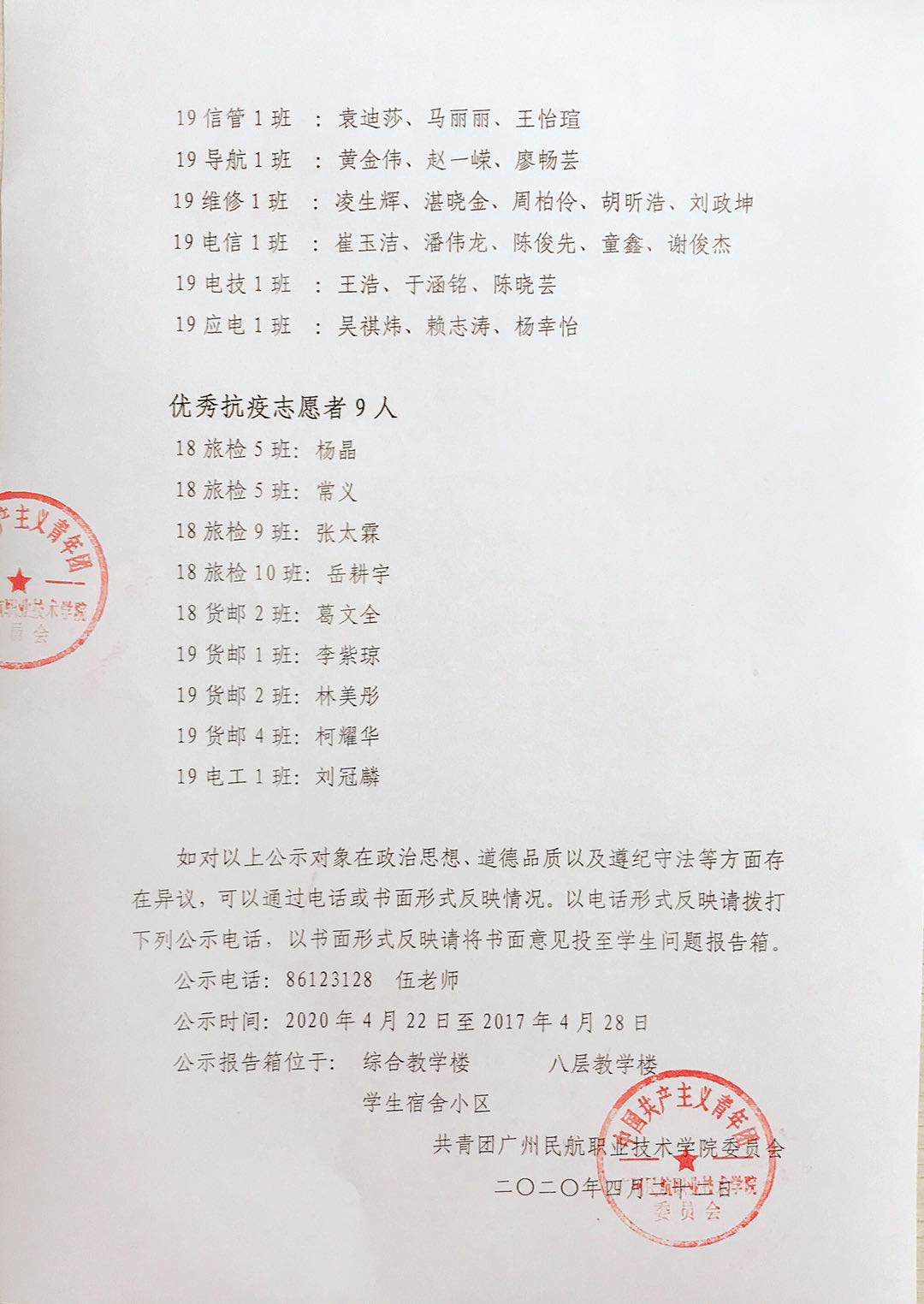 关于航空港管理学院2020年上半年入党积极分子公示名单