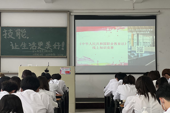 为保证此次职业教育活动周的顺利开展,航空港管理学院成立活动周工作小组,统筹安排活动时间和内容,制定活动方案。各班紧紧围绕“技能:让生活更美好”这一主题,扎实开展内容丰富、形式多样的主题班会,让学生切身感知和了解职业教育。主题班会着重讨论了我国新修订的职业教育法,学习了“习近平总书记关于对职业教育工作的重要指示精神”,还开展了《中华人民共和国职业教育法》线上知识竞赛等活动。