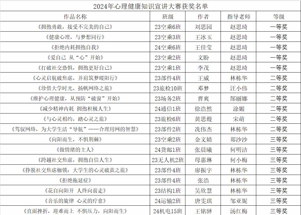 赋能“心”知识,提升“心”能量——2024年心理健康知识宣讲大赛获奖名单