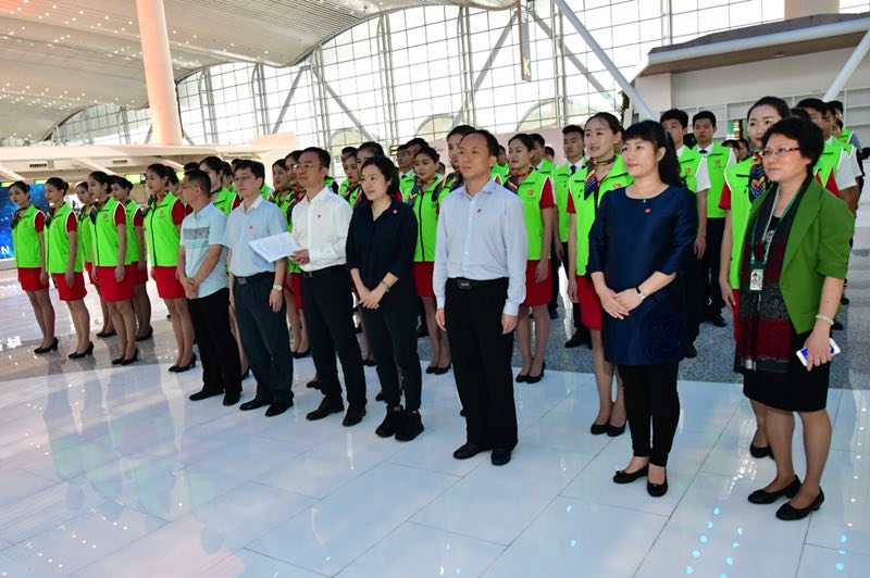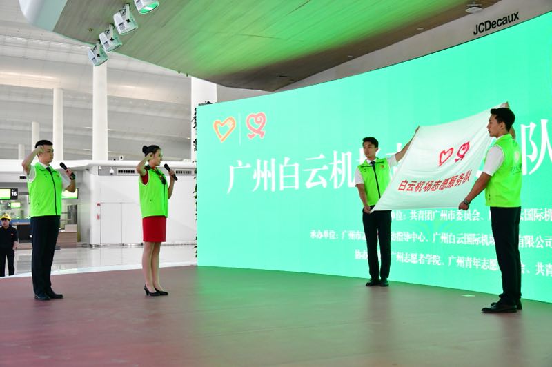 4月24日下午,由共青团广州市委员会、广州白云国际机场股份有限公司主办,广州市志愿者行动指导中心、广州白云国际机场股份有限公司客户服务中心、民航经营管理学院承办的白云机场志愿服务队成立暨誓师活动在白云机场T2航站楼“天空舞台”顺利举行。团市委、白云机场、花都区团委相关领导、首批机场志愿服务队成员、社会媒体记者等约150人参加了活动,民航经营管理学院党总支蔡昌书记、学工办肖静主任受邀出席。