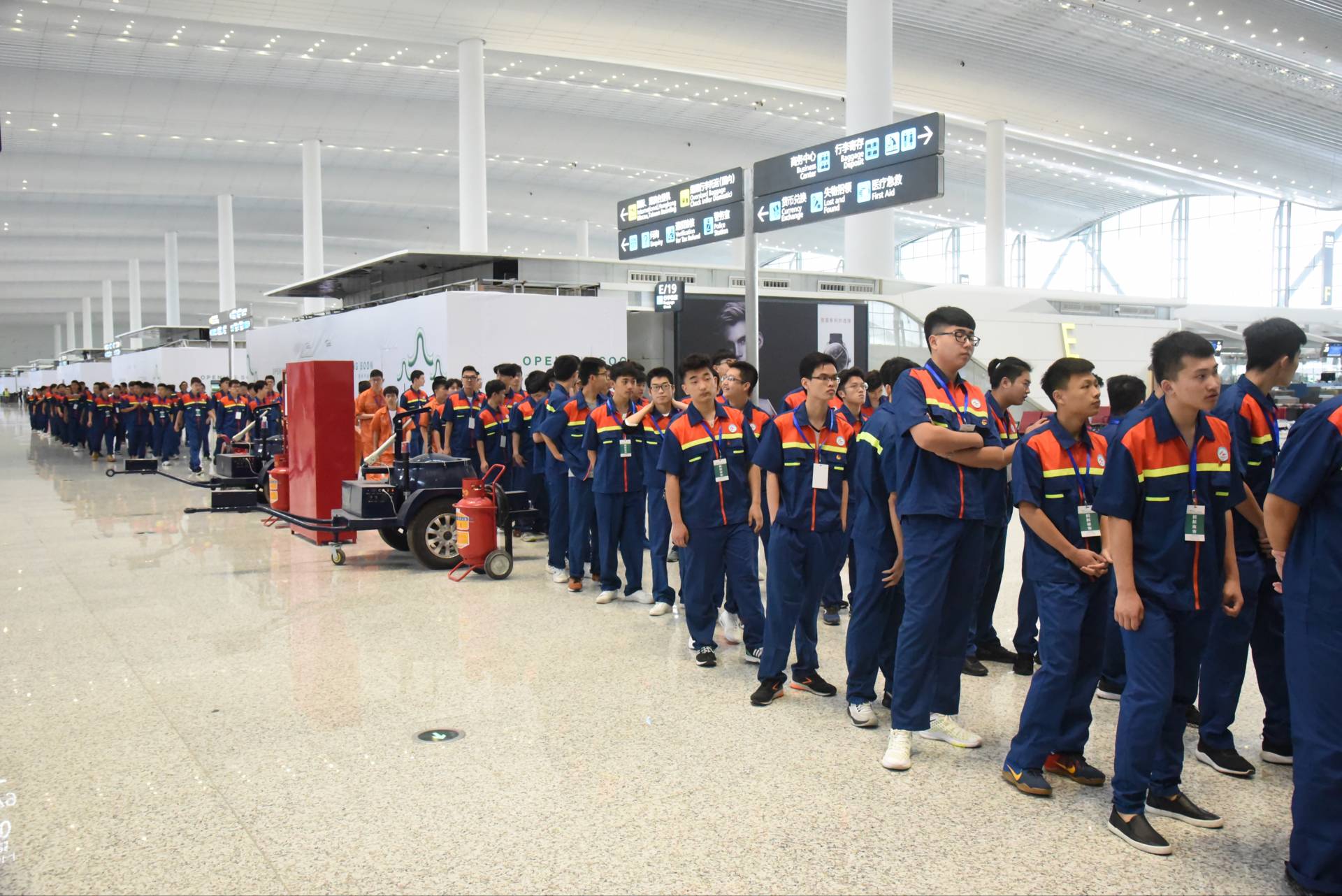 广州白云国际机场T2航站楼正式启用在即,为检验各项旅客保障流程、设施设备以及系统的适用性,4月1日上午,飞机维修工程学院在学校党委的统一部署下,组织3000余名学生志愿者作为旅客参加了新航站楼大型综合演练。