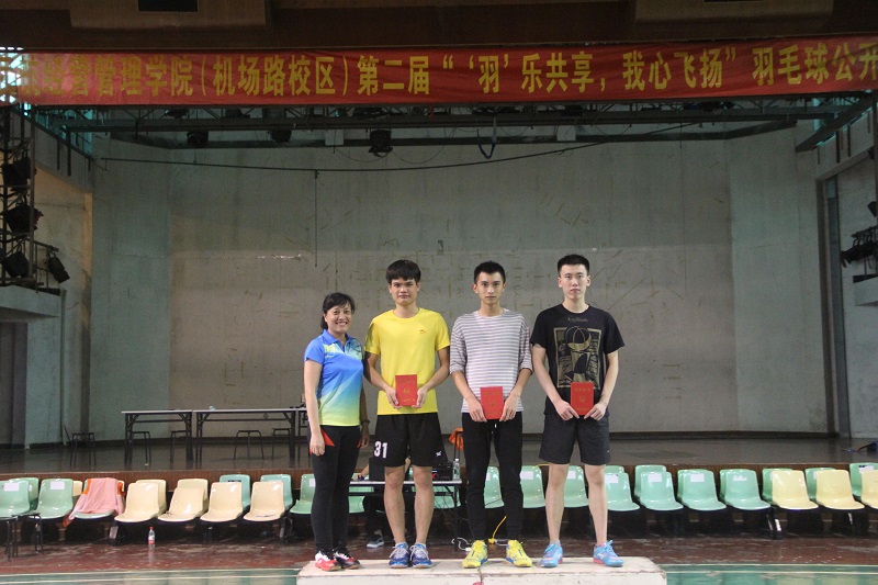 4月5日,民航经营管理学院“‘羽’乐共享,我心飞扬”羽毛球决赛在机场路校区体育馆隆重举行。民航经营管理学院张力平院长,人文社科学院体育教学部林军主任,民航经营管理学院学工办肖静主任、黄进委副主任等领导、老师出席了活动。