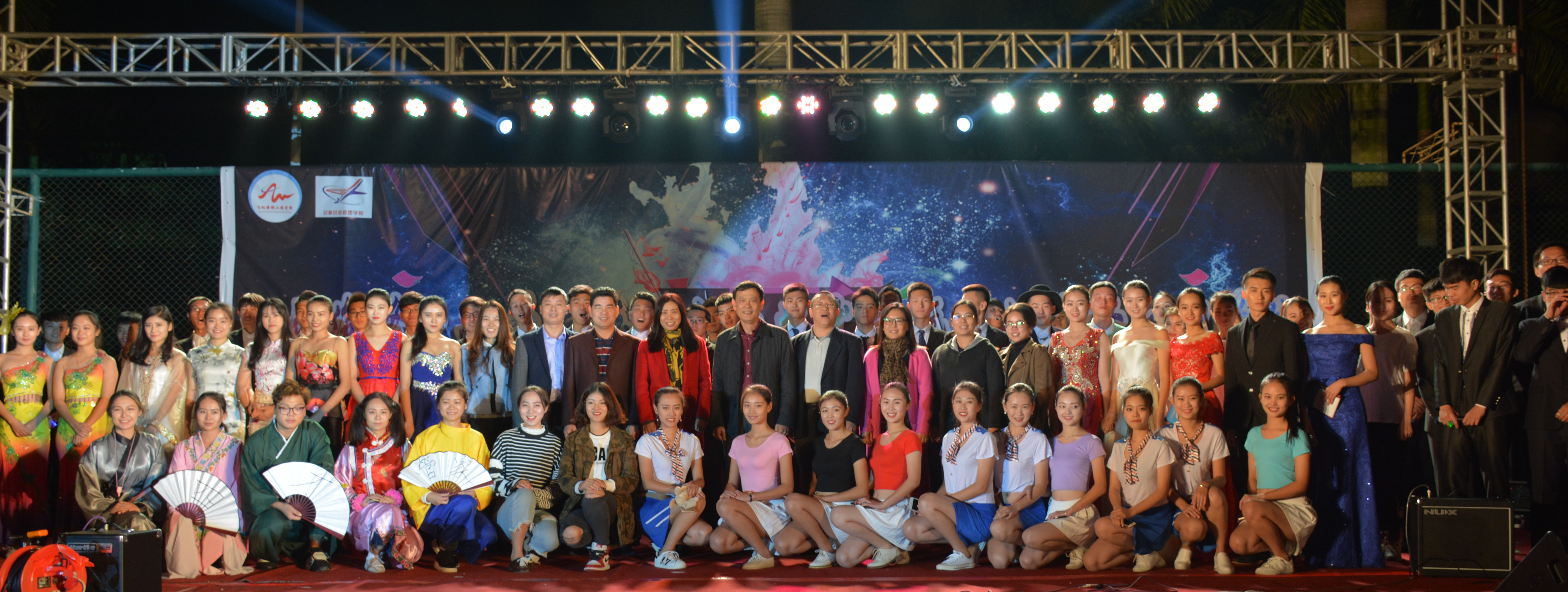 看远方夕阳西下染红天空,观校足球场上霓虹闪烁照亮天际。随着动听的音乐声扬起,飞机维修工程学院第五届校园文化艺术节于11月30日晚上在白云机场校区足球场隆重拉开帷幕。此次文化艺术节我院联合民航经营管理学院共同进行汇报演出。飞机维修工程学院和民航经营管理学院的相关领导、老师和近千名同学共同观看了本次晚会。