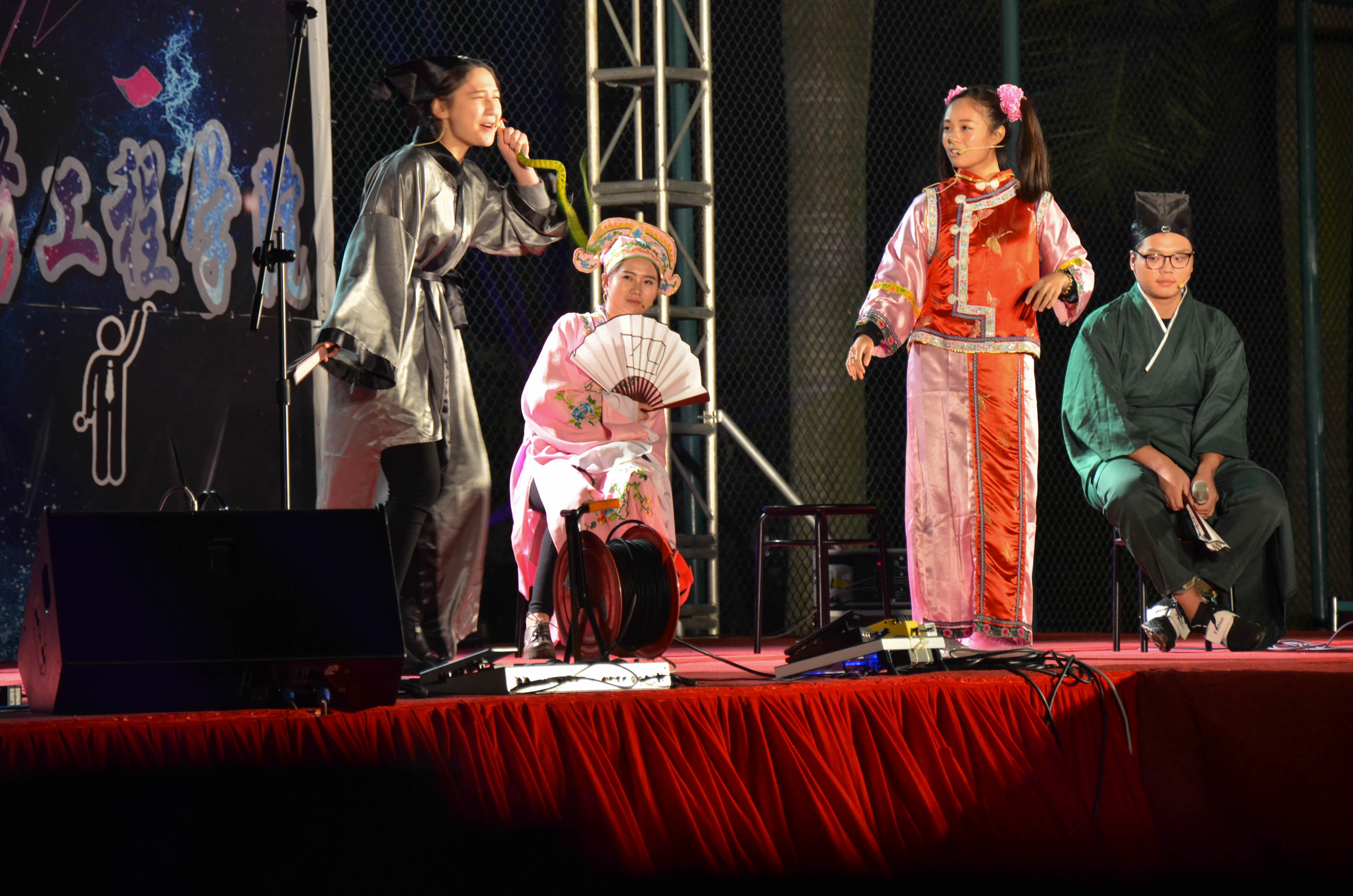 当晚的演出,首先由经管学院街舞社带来的开场舞将气氛点燃,潇洒帅气的舞姿使得在场观众拍手称赞,随后深蓝话剧社带来的《四大才子》话剧表演又帮助大家放下压力,引来观众席不断欢笑,接下来的《走出沼泽》等舞蹈、T台秀、乐队表演等丰富的节目也精彩纷呈,迎来观众阵阵掌声和喝彩。经管学院女生携精彩节目的到来为男生居多的维修学院增添了不少光彩。除了这些精彩纷呈的节目外,此次晚会的互动环节可谓是一大亮点,主持人们走下舞台到同学当中进行派送表情包抱枕、打电话抢派红包等互动,将现场气氛带到顶点,获得礼物的同学们一个个喜笑颜开。艺术节的最后,由学院所有学生会干部带来了一首大合唱《我相信》,抒发了学生干部们凝心聚力、为学院学生工作贡献己力的真挚情感,也为这次晚会画上了一个圆满的句号。
