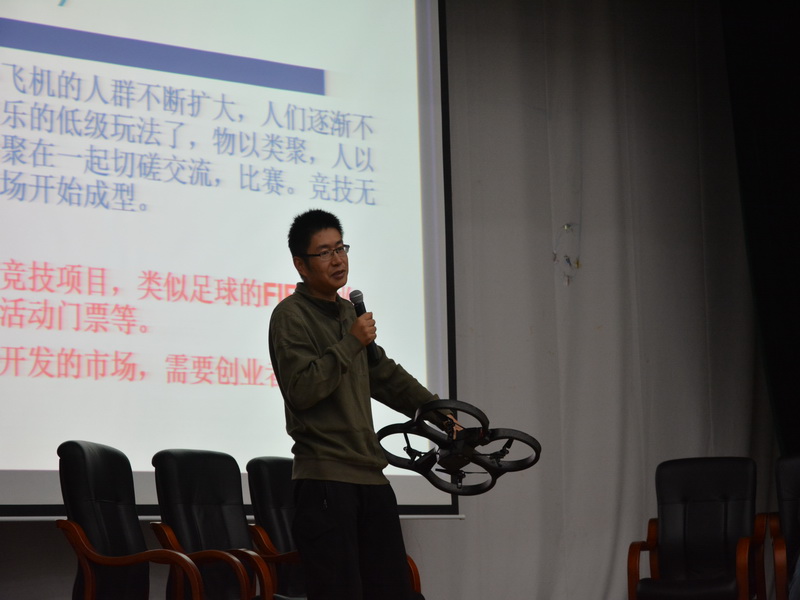 讲座从“无人机产业发展及其前景”、“无人机产业政策”、“大学生依托无人机产业创新创业的方向”和“国家、广东省及学校对大学生创业的政策解读”四个方面与现场师生一同探讨了“依托无人机产业开展创新创业活动”的新思路和新途径。期间,师生还可通过尝试无人机操作来与专家进行面对面的互动交流。现场气氛十分浓烈,同学们都兴致勃勃的想要试一试手。