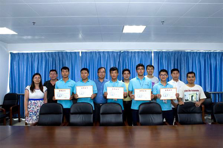 在颁奖仪式之前,学院张建荣院长对此次参赛的情况作了简要总结。他先肯定了参赛队员及指导教师们两个多月以来的艰苦训练,并对整支团队意外囊括大赛全部一等奖表示祝贺。他热情洋溢地表扬了这支队伍的战斗力,并对团队成员在比赛中突显出来的安全意识,团结合作精神,专业英语能力和实践动手能力给予高度赞扬。他鼓励师生们再接再厉,继续发扬机务作风,为校争光,为民航的发展做出贡献。他还希望获奖选手们将参赛的切身经历和经验转化正能量,传授给身边的同学及学弟、学妹们,为推动良好的学风树立标杆。最后,校教务处梁智生副处长为大赛第一名的团队成员栾亚洲、史学伟、张浩3位同学颁奖,学院张建荣院长为大赛第二名的团队成员董存雷、叶方侃、张跃健3位同学颁奖。