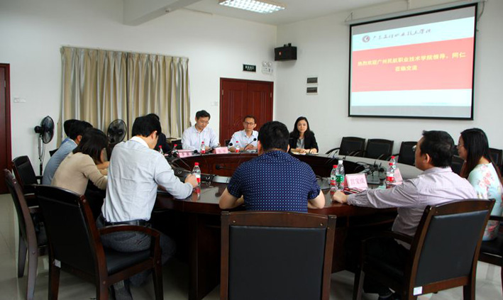 上午,学工团队先到广东工程职业技术学院进行了考察和学习。座谈会上,该校李艇副校长和学生处张华处长分别就学生管理工作的创新点、辅导员队伍建设、学校发展前景和两校之间的交流合作等方面进行了发言。飞机维修工程学院党总支宫宝成书记和方松副书记也就学工团队建设、学院专业特色发展及学生工作的未来进行了互动交流。座谈会后,学工团队还应邀参观了该校校史馆、学生事务办事大厅和学生创业街。