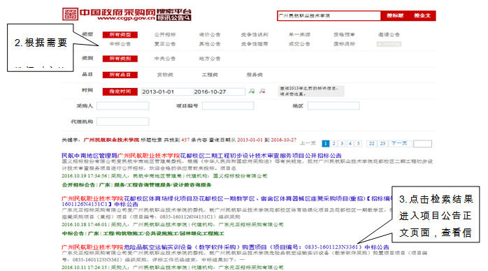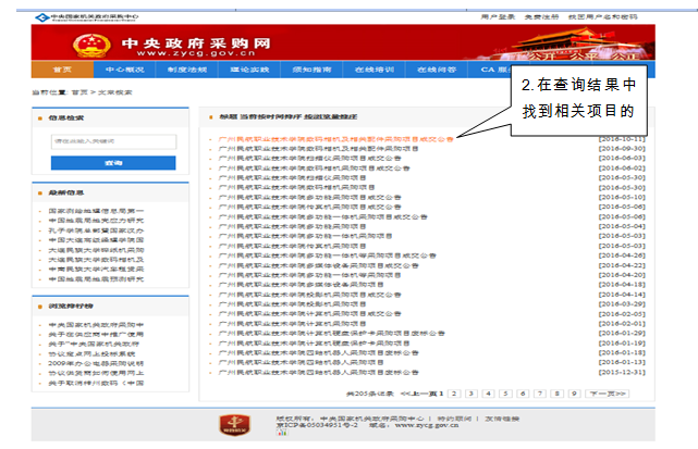 中国政府采购网(www.ccgp.gov.cn)是财政部唯一指定的政府采购信息网络发布媒体,是国家级的政府采购专业网站,请登陆该网站查看相关的物资设备采购和重大基建工程的招投标信息。