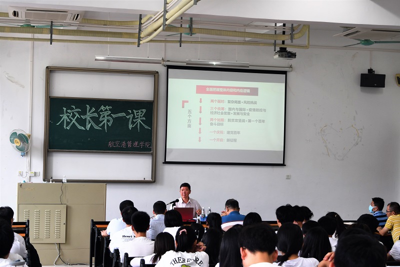 解根怀校长以《学思笃行,做担当时代大任的民航青年——< 习近平谈治国理政>》第四卷学习导读》为主题,结合自身学习、生活、工作经历,结合党的历史和民航发展史,从学——全面把握整体内容和内在逻辑、思——深刻领会核心要义和思想精髓、行——争做担当时代大任的民航青年三个层面,用生动有趣的故事案例、幽默形象的语言、清晰透彻的说理,深入浅出,情真意切,引导同学们进一步思考和学习如何学深悟透《习近平谈治国理政》第四卷。解校长勉励民航青年学子,在新时代新征程上要热爱伟大祖国,树立远大理想,担当时代责任,弘扬当代民航精神,勇于砥砺奋斗,练就过硬本领,立足民航建新功,以自己的实际行动谱写民航强国梦,迎接党的二十大胜利召开。
