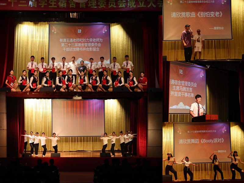 最后,史晓强处长发表讲话,他对第二十二届宿管会的工作给予了充分的肯定,并对新一届宿管会成员提出要求:明确工作目标,处理好学习与工作之间的关系,做到学习工作两不误,同时要做一个有心人,不断学习、提高和完善自己。此外,他还提到,机场路校区部分楼宇、田径场、篮球场正在改善生活条件施工(完成),住宿、生活环境将会得到逐步的改善,各位干部在现阶段要带领同学们做好宿舍卫生打扫、垃圾分类、节能减排、光盘行动,成为绿色生活的倡导者,疫情防控和安全生活的践行者。此次成立大会除了传统的既定流程外,还新增了由学校舞蹈协会和爱音协会带来的歌舞节目,丰富了大会内容。