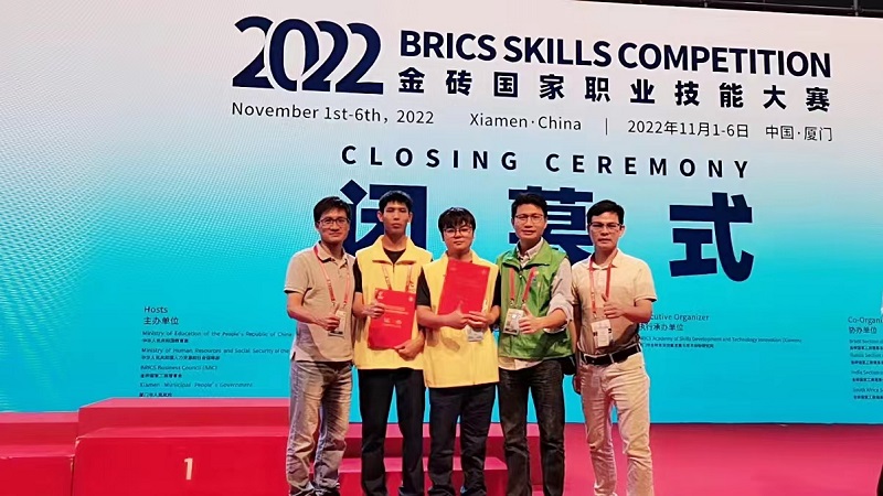 11月1日至11月6日,由教育部、人力资源和社会保障部、金砖国家工商理事会、厦门市人民政府主办,中国教育国际交流协会、教育部职业教育发展中心、金砖国家工商理事会技能发展工作组承办的2022年金砖国家职业技能大赛(决赛)在厦门国际会议展览中心举行。经过省赛或区域选拔赛晋级的来自全国20多个省市、40所院校的40个代表队、80名参赛师生齐聚一堂,上演了激烈的角逐。
