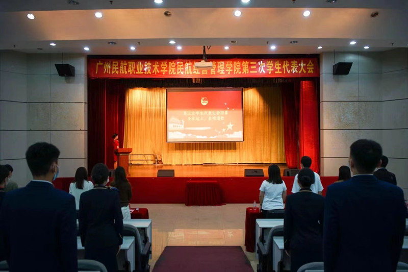在庄严的国歌声中,民航经营管理学院第三次学生代表大会拉开序幕。会议审议并通过了第20届团总支学生会工作报告、第三次学生代表大会选举办法、总监票人、监票人、计票人名单。主持人宣读主席团成员候选人简介,并以无记名投票的方式选举产生第21届院学生会主席团成员。伴随着庄严的团歌,本次大会胜利闭幕。