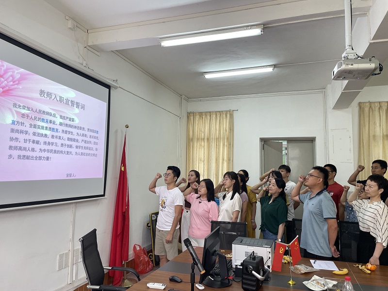 最后,举办新教师入职宣誓仪式,提升新教师在工作岗位上的责任感和荣誉感。学院将大力弘扬尊师风尚,同心同德、同向同行、砥砺奋进,以实际行动迎接党的二十大胜利召开。