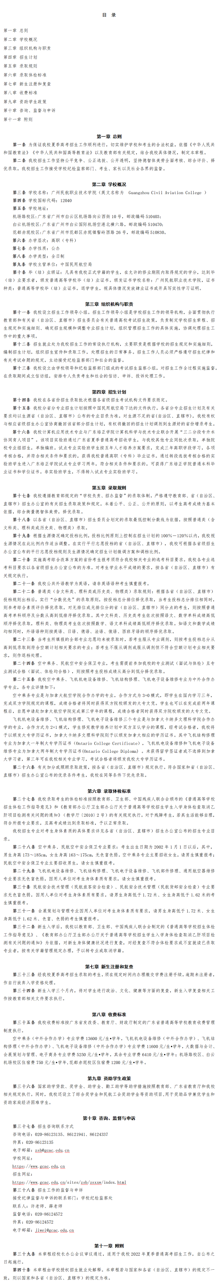 广州民航职业技术学院2022年夏季普通高考招生章程
